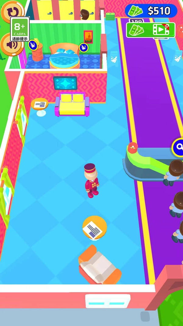 客官请慢走游戏模拟酒店管理。玩家是酒店的老板,负责接待每一位前来入住的顾客,及时满足顾客的需求,获得顾客的好评,吸引更多的顾客入住酒店,还可以升级酒店,吸引更多的优质顾客,赚更多的钱,让大家体验不一样的商业乐趣,提高业务技术。