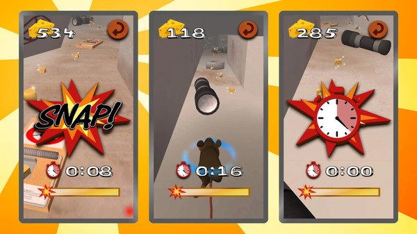 途中会有非常多的障碍还有陷阱,并且老鼠如果被老鼠夹抓捕到的话游戏就会结束,