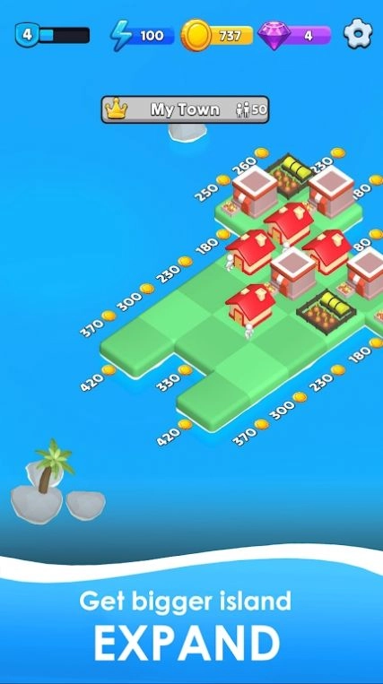 1.玩家将在阳光沙滩上完成各类兼并与放置任务,亲手打造专属于自己的梦幻小镇。