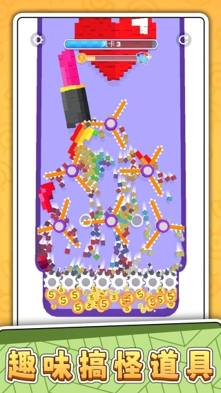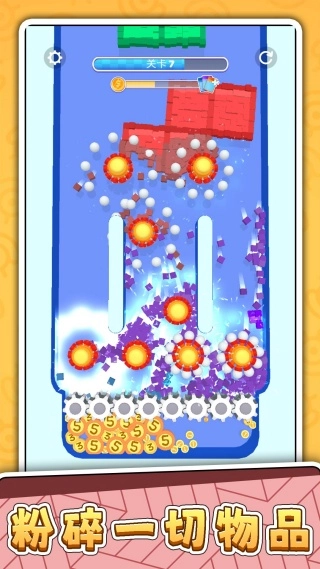 1.运用色彩鲜艳的复古像素美术风格,方块破碎与金币掉落的特效都洋溢着轻松有趣的氛围。