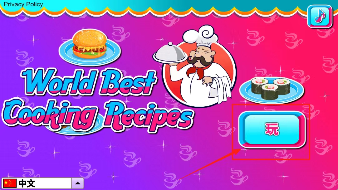 1、点击右下角蓝色的“玩”字按钮即可启动,可通过左上角调节语言、右上角控制音乐,以营造舒适的游玩环境。