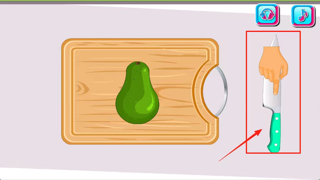 4、依据指引使用右侧的厨具对食材进行加工(例如切牛油果),严格把控烹饪的每一个步骤和调味环节,最终完成菜品的制作。