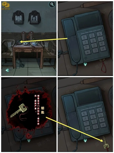 1、完成剧情引导后,前往(工作室-右侧),点击桌子,在电话下方找到【钥匙】。