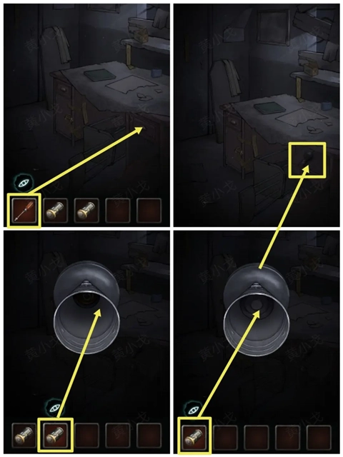 4、使用【螺丝刀】撬开桌子右侧的抽屉,取得老式手电筒,并装入两节【电池】。