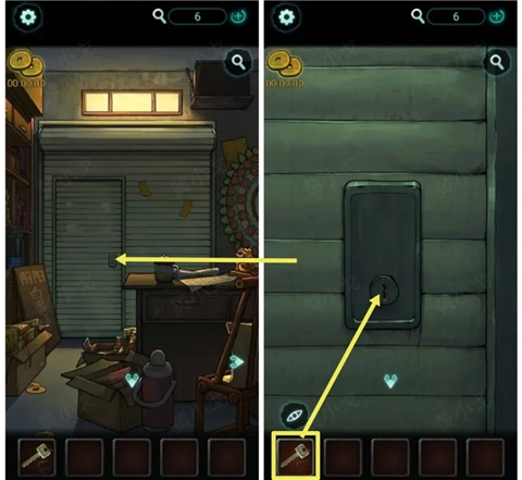 2、(工作室-左侧)点击卷帘门,使用【钥匙】开启上方的锁,触发剧情。