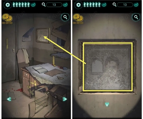 11、(废弃房间-门)点击墙上的照片,拖动以擦除灰尘。