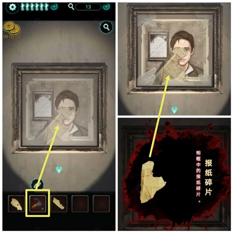 12、用【锤子】砸碎玻璃,获得【报纸碎片】。