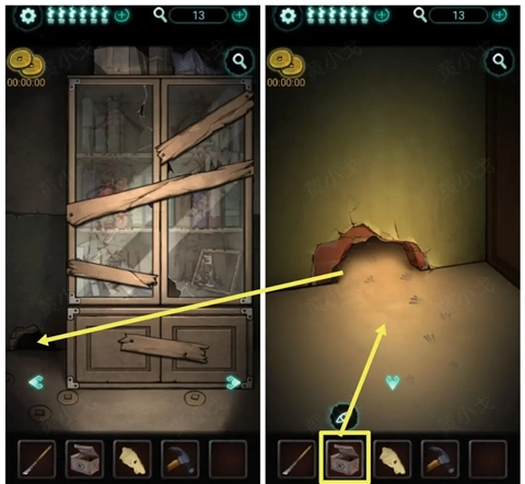 9、(废弃房间-柜子)点击老鼠洞,放置【老鼠药】。