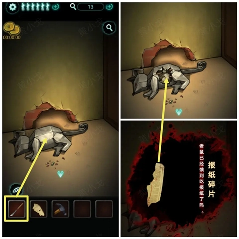 10、切换到其他场景后再次进入,老鼠会变成纸老鼠,使用【裁纸刀】将其割开,即可获得【报纸碎片】。