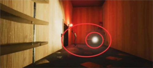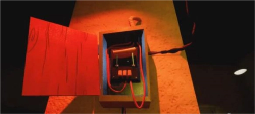 继续往前走,走到尽头后,在一个人偶旁边能找到手电筒。接着前往尽头的屋子,屋里有扇铁栏门打不开,旁边有台发动机,不过通往发动机的门正在漏电。