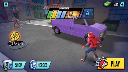 3、解锁全新的组合技能与能力,体验蜘蛛超级英雄与黑帮及其头目之间紧张刺激的动作对决。