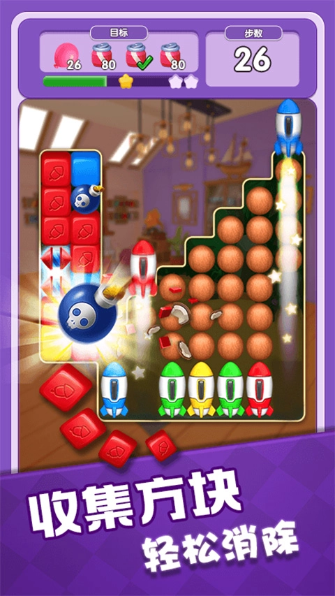 奇幻消除充满魔幻色彩的益智消除游戏,将趣味三消与房屋装修巧妙结合,带来双重游玩乐趣!游戏采用萌趣卡通画风,搭配缤纷多彩的视觉特效与灵动音效,沉浸式体验拉满。你需要以消除闯关为核心,通过匹配方块赢取房屋装修所需的各类材料,亲手打造专属梦幻小屋。