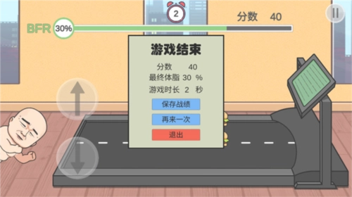 7、要是不小心从跑步机上摔下来,就意味着游戏结束,系统会显示玩家的最终得分。