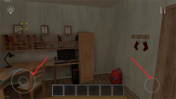 1、进入后,你会出现在自己的房间里,左侧摇杆可操控移动,右侧按钮能实现起立与下蹲动作。