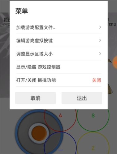 4.按下返回键会弹出如下菜单,之后既能编辑菜单内的虚拟按键,也可隐藏手柄。