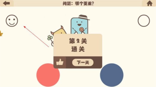 分别向上拖动两个球,通过感受它们下降速度的快慢来判断哪个更重,然后点击较重的那个球上方的圆圈。