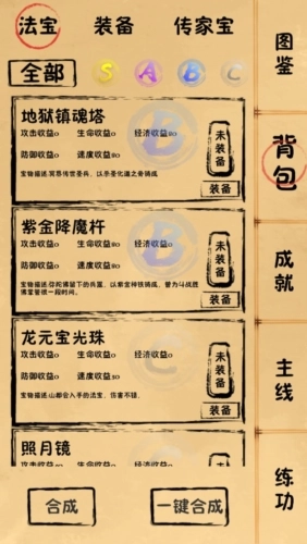 2、仙侠风格的文字挂机玩法,玩家得通过一轮接一轮的练功,以此获取资源与属性值。