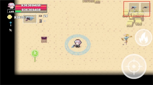 进入后,我们会直接开启战斗,屏幕两侧设有两个摇杆按钮,左边的用来操控主角移动,右边的则控制攻击方向。