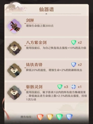 ④法宝机制:每位弟子都拥有专属的法宝,该法宝在每场战斗中仅能生效一次。多数法宝的特性与其自身的主成长属性相匹配,具体特效可由各位在游戏内自行体验,这里就不展开详述了。此外,法宝的效果可以通过升级来进一步提升。