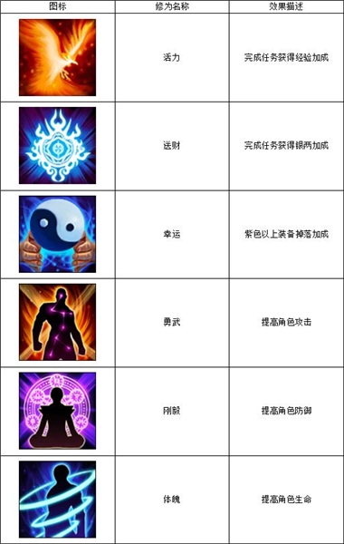 3、修为对应增加的属性
