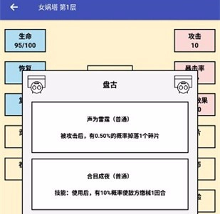 在女娲塔内,存在掉落碎片的概率,当集齐同一系列的3个或9个碎片时,会永久提升初始属性。