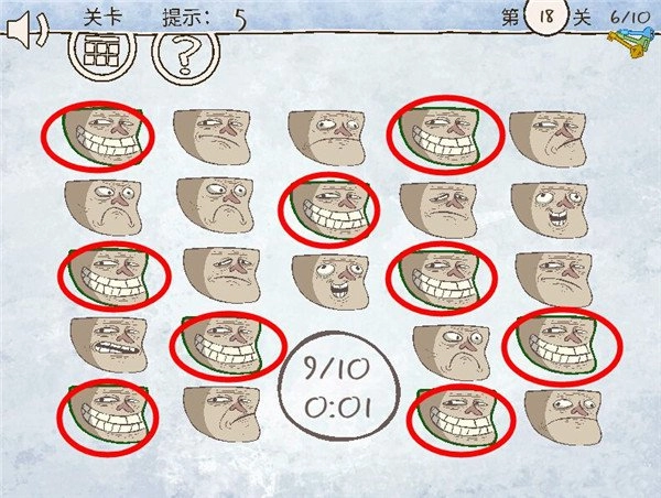 18、第十八关:寻找10个头。这一关我确实玩了挺长时间,最后才摸透其中的门道。页面上一开始能看到9个头,等倒计时结束后会弹出一个新页面,点击这个小页面里的头,就能顺利通关了。