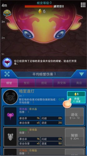 2、通过升级螃蟹能够提升其攻击伤害,还可以对螃蟹进行进化,不同进化效果各有差异,同时还有多样的炫酷技能可供使用。