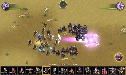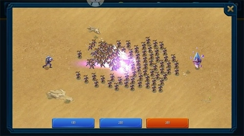 界面顶部设有倒计时功能。玩家可在底部挑选合适的士兵。一旦时间归零且金钱充足,士兵便会自动发起攻击。