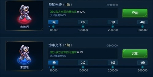 光环的充能能量源于送礼行为,无论是主动送出礼物还是被动接受礼物,都能获取能量;接着把这些能量充入你指定的光环中,当充能达到特定程度时,就能激活对应等级且符合你选择的光环。光环的唯一功能是抵消对方的装备效果,具体分为三种类型:一是抵消对方的暴击率加成,二是抵消对方的闪避率加成,三是抵消对方对英雄的额外追加伤害。此外,光环具有耐久属性,在你携带光环的状态下,若对局失利,光环的耐久会降低1%;耐久可通过消耗金币进行修复。光环削弱对方的实际效果,等于光环本身的基础效果乘以当前耐久度。耐久度的上限为100%,但不存在下限,即耐久度可能变为负数,此时光环会转变为辅助对方的效果,反而会提升对方的对应属性。因此,拥有光环后,在使用过程中要注意及时进行维修。