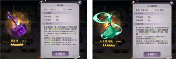 前期可以先出紫雷锤,等后续解锁天道之力后再换上八宝琉璃瓶,它既能提供治疗效果又带有吸血功能,毕竟只有保证生存才能实现持续输出。