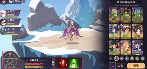 昆仑登仙玩法仅触发种族克制的加成效果:强克制状态下伤害提升20%,弱克制则提升10%。需要注意的是,消除加成与灵兽在此玩法中均无法使用,因此战斗时得留意双方的种族属性,适时调整上阵英雄,避免因被反克制而陷入苦战(别问我为啥这么清楚,都是踩坑踩出来的经验)。