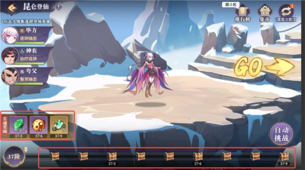 开服第二天会开启新玩法【昆仑登仙】,简单来说就是选择出场英雄,接着进行1v1的对决,赢了就能获得奖励,输了就换另一个英雄上场,直到三个角色都失败才结束。这个玩法理解起来不难,但我想和大家分享一些具体的玩法思路。