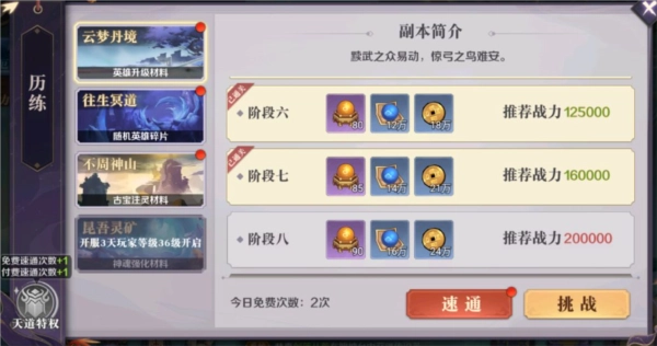 很多人可能把历练当成副本了,每天上线先扫荡,这样其实可能会损失一些资源。因为前期每天的提升幅度都挺大的,简单来说,就是不如先提升自己,再去挑战,等挑战到打不过了,再回来扫荡。毕竟前期能领先一点都很关键。