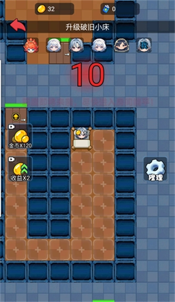4、正式开始后,通过收集金币来升级房门,并建造防御塔等各类设施,以此抵挡鬼怪的袭击。