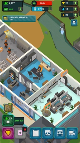 感染者和医生都认为您在诊所的发展中扮演着重要角色。您的员工安全与治疗效果,取决于杂物间、实验室、手术室及护理人员室的质量。请升级病房、休闲区和心理学家办公室,并密切关注水与电的储备情况。