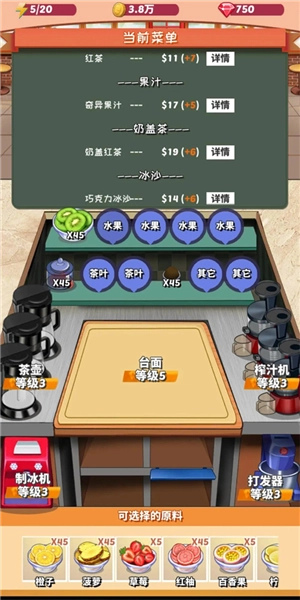 这里还有一些实用的小技巧:比如每天营业结束后去玩游戏,等技术熟练了基本每次都能赢,这是前期攒金币的好方法;每次买食材时尽量凑够50金币以上再结账,这样能触发讨价还价,毕竟前期盈利不多,升级机器又贵,哪怕一个金币也得省着花;雇佣员工后要记得时常关注他们的心情,心情太差会影响技能发挥;卖当下流行的食物最赚钱;要是饮料做错了,可以把杯子往下拖,就能倒掉里面的东西重新做。
