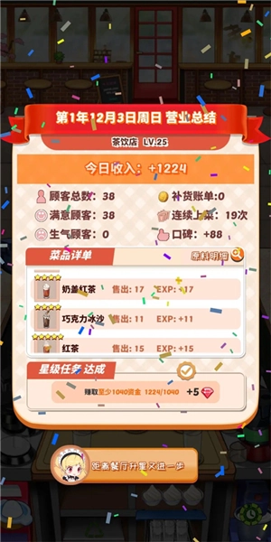 这里不会再有三星评价的设定,也不会因为任务未完成而导致卡关;与之相反,关卡仅仅是对日常营业的模拟:选择提前打烊,或是坚持辛苦加班,完全由你自己决定!