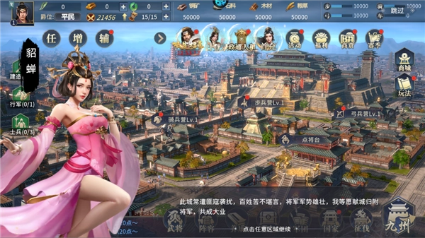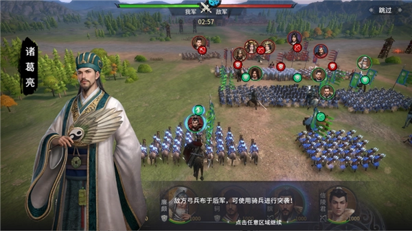 通过招募贤才、组建军队,合理搭配兵种、武将与技能以赢得战斗;建立外交同盟,借道远攻、近邻互不侵犯,扩张领土并提升资源产量,实现以战养战;发展多支队伍,自由排兵布阵、运筹帷幄,以战争艺术和智慧夺取天下。