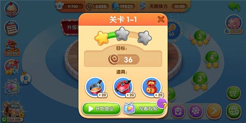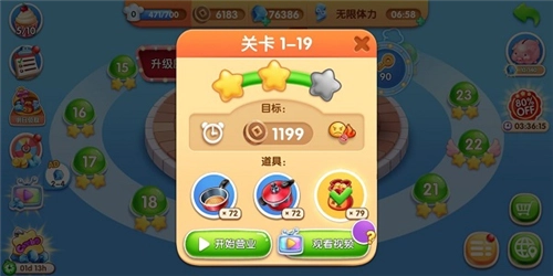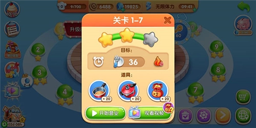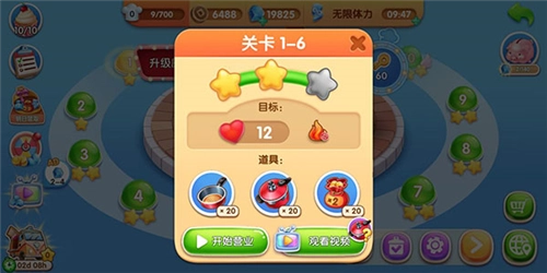 4、要是碰到没通过的关卡,也别灰心,不妨先去升级厨房,之后再尝试挑战;或者在闯关时用些道具,就能更轻松地通关啦!
