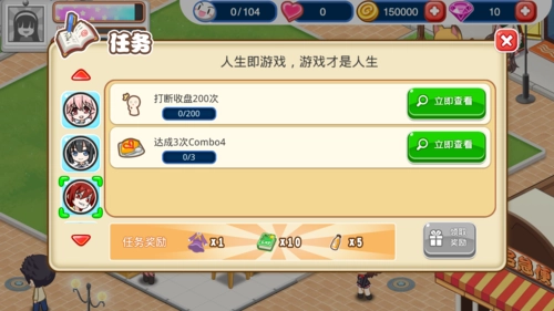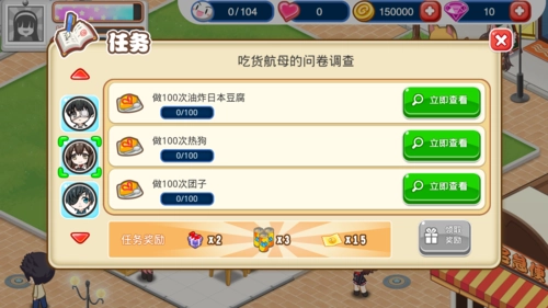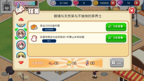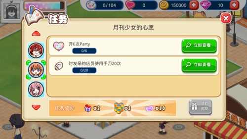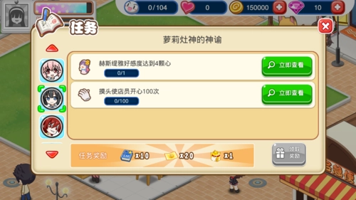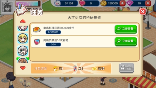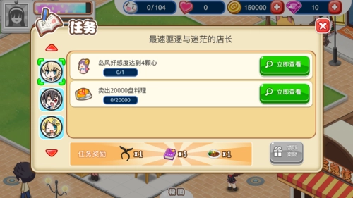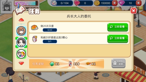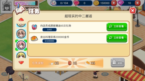 顾客在店里用餐后,可能会出现一个爱心图标,点击它赠送礼物可以增加好感度。不同的SP顾客性格各异,赠送礼物的好感加成也不一样。越往后,每颗心所包含的好感度就越高,升级的难度也随之增大。SP顾客的任务中,有些能够解锁新菜品,建议尽量完成这些任务。虽然任务大多有一定难度,但多花些时间应该就能搞定,不过那些需要氪金的任务确实有些遗憾。
