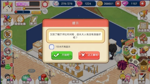 大家可以看到派对进度条旁边有个时钟,这个时钟是用于参与餐厅评比大赛的,当时钟走完一圈后,就能举办比赛了。