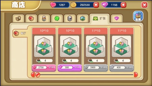 选择我们这个等级可支持的扩张面积为【10*10】,建议优先使用友情值支付扩张费用,若友情值不足,再考虑使用钻石。