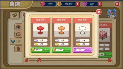 进入【商店】界面,找到【餐厅】分类,挑选我们想购买的餐桌。大家要依据自身的资金状况来考量,避免超出预算,我这里选择了图钉茶几。