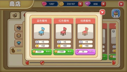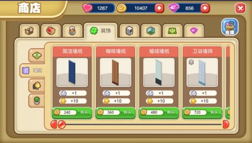 去商店选购墙纸与地板,把餐厅装点一番。这些装饰的价格都不高,要是金币充足,还能再买些盆景和墙饰来搭配。