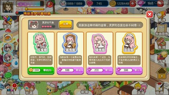 多样的系统与玩法,精致的日系Q版画风,巧妙的场景对象设计,加上原汁原味的日本动漫角色与服装,定能为你带来独特的体验与视觉享受。游戏融合了丰富元素,既能作为休闲小游戏轻松游玩,也能深入探索复杂系统,展现你出色的经营决策能力;还能像恋爱般培育美少女、提升好感度,解锁心动剧情。无论你是熟悉ACG文化的御宅族、模拟经营的忠实爱好者,还是喜欢轻松休闲的萌系玩家,都会爱上这款游戏的哦~