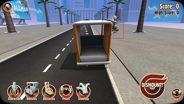 根据你选择的车型不同,木头人能摆出的姿势也会有所差异,这些姿势大致可分为车内和车外两类。或许玩家会觉得车外的姿势更显个性、更有意思,但我建议优先选择车内的姿势。要是让木头人以有趣的姿态挂在车外,它很容易在行驶途中掉落,无法抵达玩家期望的位置,得分也会因此大打折扣;而选择车内的姿势,相对来说会更稳妥一些。