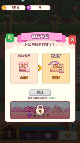 5、完成所有任务后还能升级解锁新餐厅,现在就开始经营你的餐厅吧!