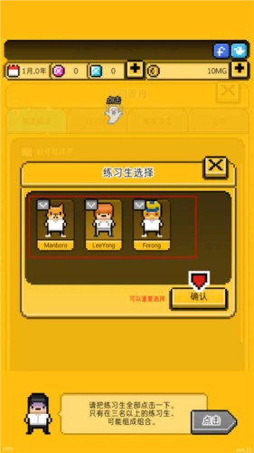 玩家创建好自己的公司后,就能挑选心仪的练习生来打造偶像团体了,可通过上方的任务按钮进入挑选界面。