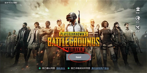 1、在本站进入PUBG体验服主界面后,点击【Guest】按钮;