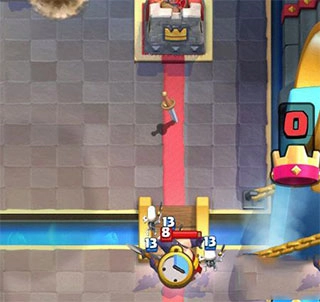 操作定义:“拉扯”指的是借助仅攻击建筑的单位来牵制对方单位。例如,冰人、攻城锤这类单位能够拉扯大小皮卡和野蛮人精锐,以此让我方公主塔实现最大化输出。这也是一种用低费用单位化解高费用单位的防守策略。此外,野猪同样可以通过拉扯来应对骷髅海或亡灵机甲等单位。